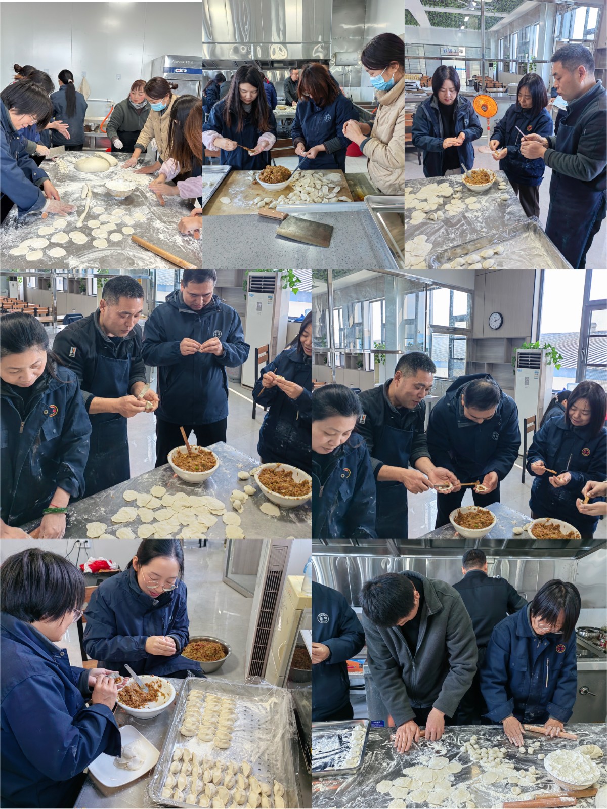 食堂備足了餃子面和美味的肉餡,大家自愿加入到包餃子的隊伍中,你和面搟皮,我填餡合邊,忙得不亦樂乎。
